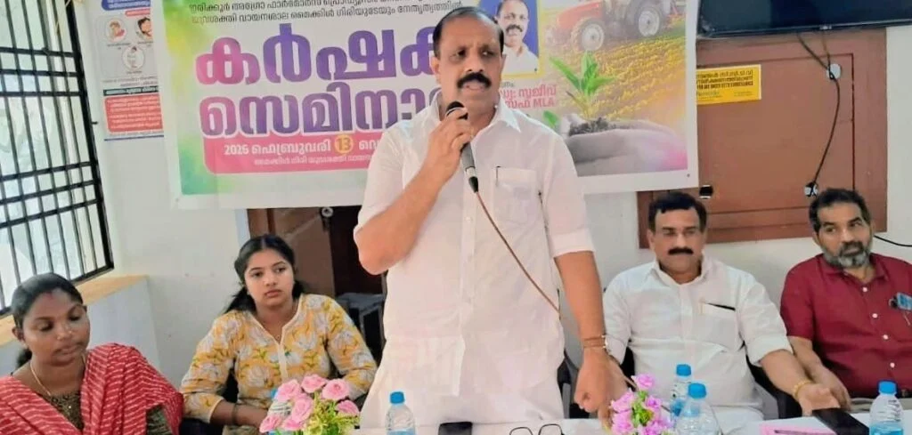 കർഷക സെമിനാറും കിസാൻ സർവീസ് സൊസൈറ്റി (കെഎസ്എസ്) യൂണിറ്റ് രൂപീകരണവും സജീവ് ജോസഫ് എംഎൽഎ ഉദ്ഘാടനം ചെയ്ത് പ്രസംഗിക്കുന്നു.